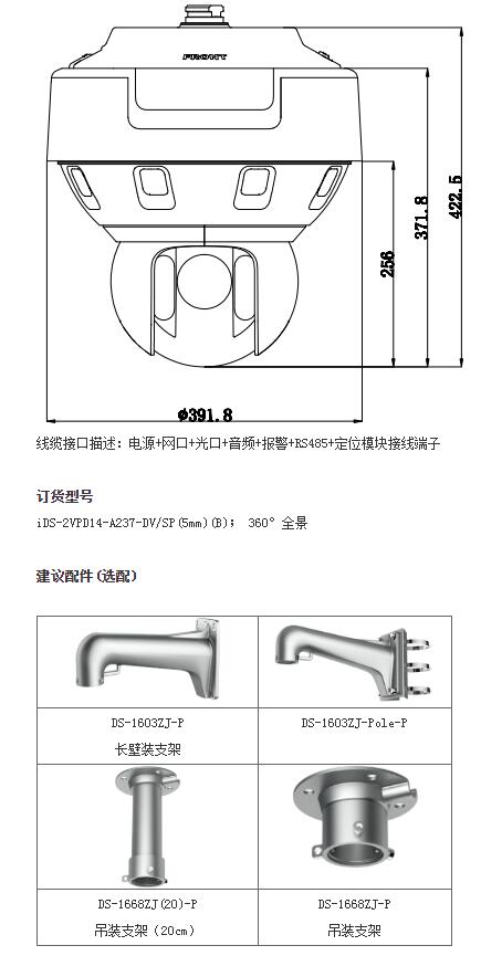 星光級(jí)360°全景一體式網(wǎng)絡(luò)高清紅外智能球機(jī)(iDS-2VPD14-A237-DV/SP(5mm)(B))
